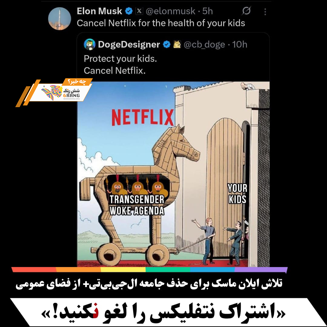 تلاش‌‌ ایلان ماسک برای حذف جامعه ال‌جی‌بی‌تی+ از فضای عمومی «اشتراک نتفلیکس را لغو کنید!»