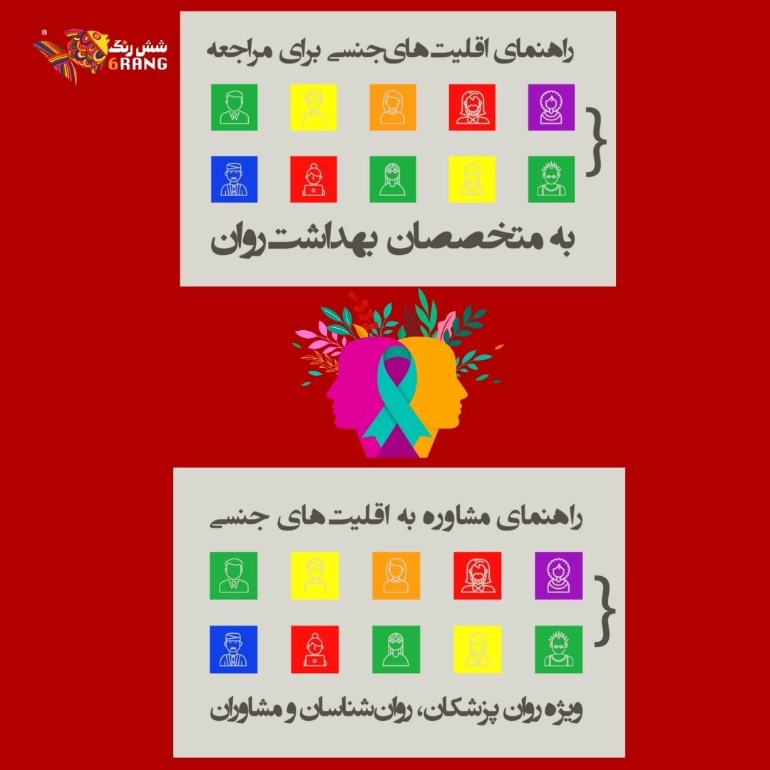 دو راهنمایی است که توسط ششرنگ با حساسیت بالا تهیه شده است و به مشاورین، روانشناسان و روانپزشکانی که مراجعین الجیبیتی+ دارند و همچنین به مراجعین الجیبیتی+ که قصد مراجعه به متخصصین این حوزه را دارند اطلاعات لازم در خصوص حقوق و مرزهای موجود را میدهد.